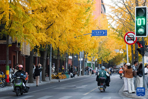 11月30日拍攝的上海市黃浦區(qū)局門(mén)路銀杏大道。(新華社記者 王翔 攝)