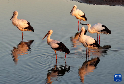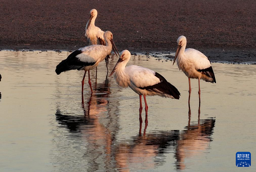 近日,大批東方白鸛飛抵河北省唐山市豐南區(qū)沿海濕地覓食、停留,形成一道靚麗的風(fēng)景。