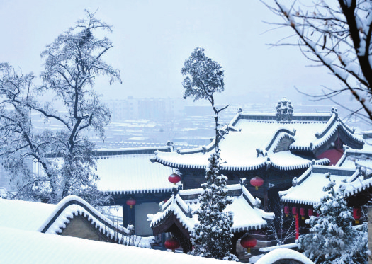冬天一定要來忻州古城,因?yàn)檫@里的風(fēng)光大不一樣——它寒冷、莊嚴(yán),與遠(yuǎn)處的系舟山連成一片,煙波朦朧;它黯淡、粗獷,與整個(gè)北方的豪邁自成一體,氣勢(shì)磅礴。它就像這雪,能給人帶去希冀。雪安,忻州古城。