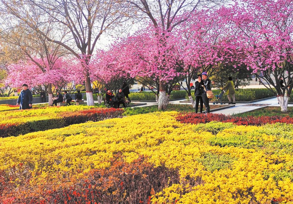 時(shí)值春暖花開季節(jié),忻州城區(qū)處處繁花似錦,美不勝收。圖為4月14日,市民在忻州城區(qū)和平廣場(chǎng)靜享春光。 (宮清華 攝)