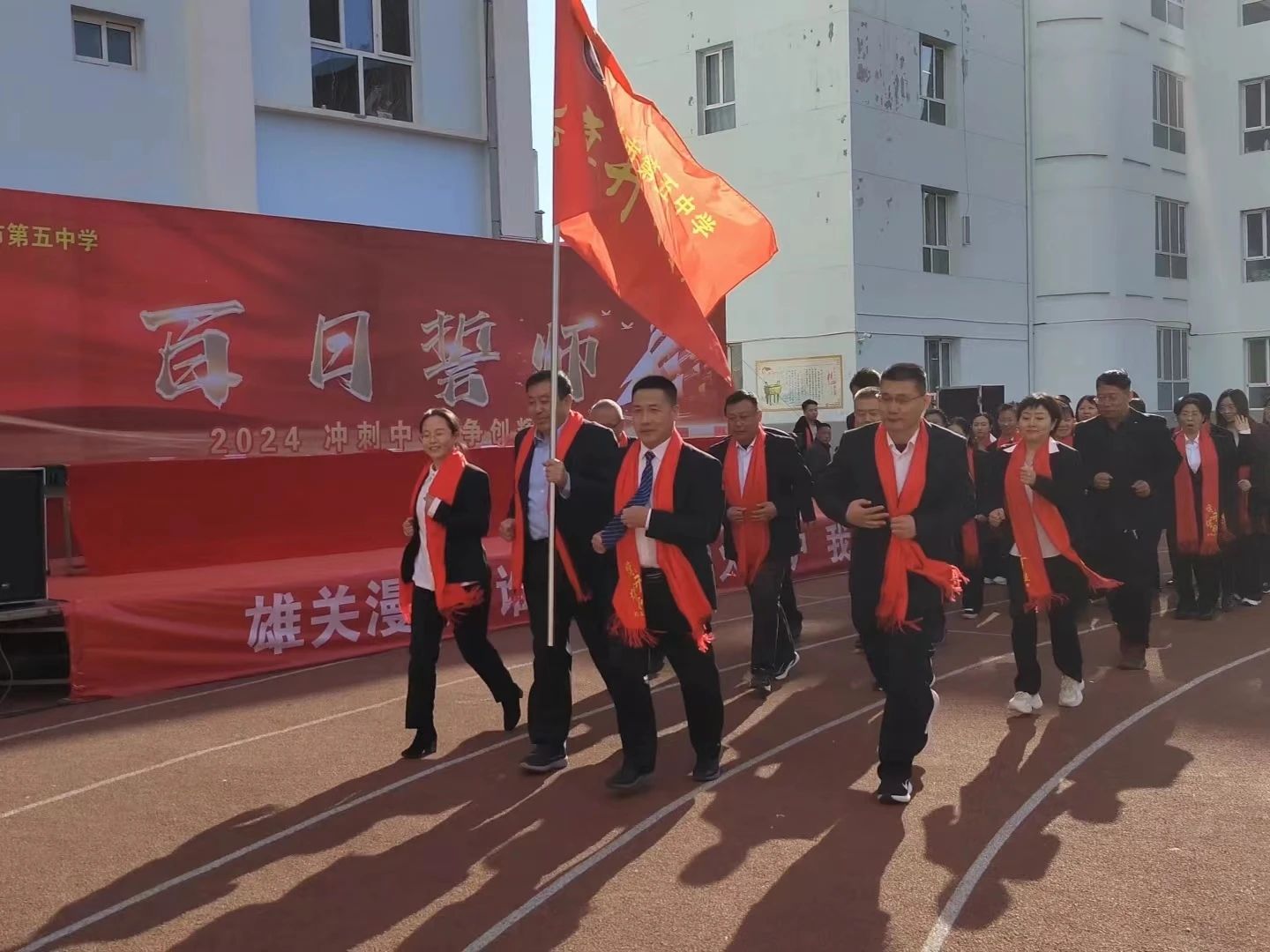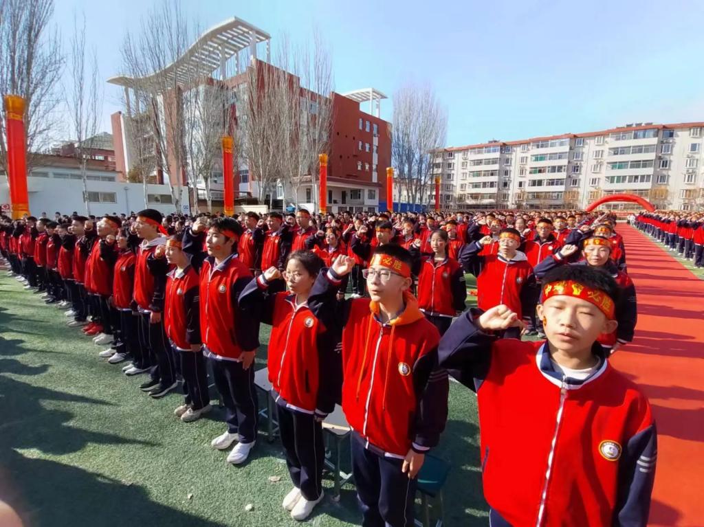 趙俊瑞校長表示,在去年學(xué)校中考取得了優(yōu)秀的成績,號召全體師生發(fā)揚(yáng)釘子精神,奮斗一百天,決勝一百天,勉勵(lì)在場同學(xué)們堅(jiān)定決心,不畏艱難,堅(jiān)持到底,激勵(lì)全體師生團(tuán)結(jié)一致,開拓創(chuàng)新,努力奮斗,以科學(xué)的方法和良好的心態(tài)決勝中考戰(zhàn)場?!褒埿旋擙搯⑿鲁?,前程朤朤向未來”,攻堅(jiān)克難,千錘百煉。風(fēng)雨兼程,無畏前行,在高質(zhì)量發(fā)展的道路上奮勇前進(jìn)。