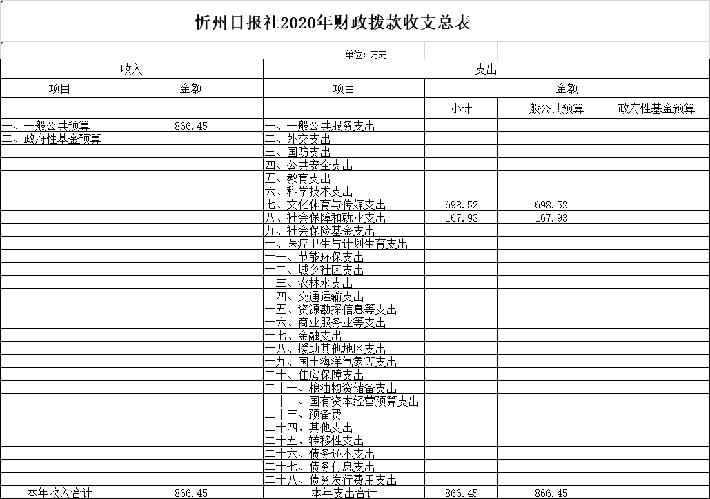 忻州日報(bào)社2020年收入預(yù)算866.45萬元,比2019年增加15.62萬元。