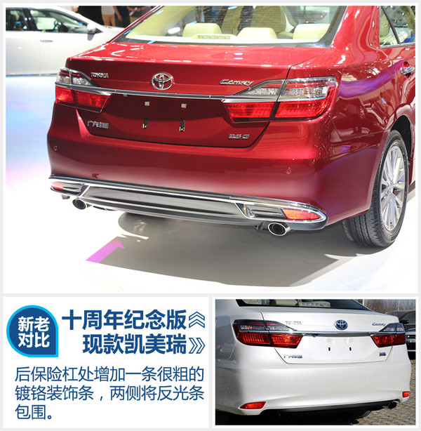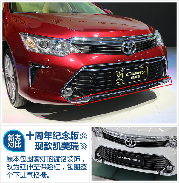 7月15日,為期10天的2016年長春國際汽車博覽會在吉林省長春市正式開幕。開幕式當(dāng)天,廣汽豐田正式發(fā)布凱美瑞十周年紀(jì)念版車型,共推出包括混動(dòng)版在內(nèi)的9款車型。新車在外觀和配置方面進(jìn)行了一些升級,將于今年8月到店上市。