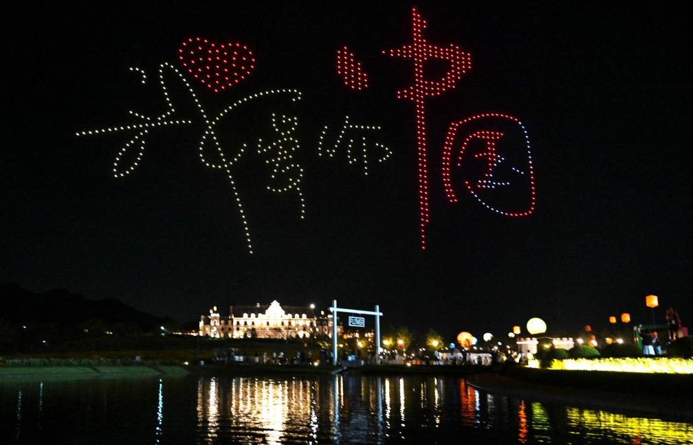 10月4日晚,在浙江省金華市武義縣花田美地景區(qū),精彩的無人機(jī)表演為游客呈現(xiàn)了一場(chǎng)視覺盛宴。新華社發(fā)(張建成攝)