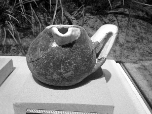 高淳博物館的二樓是一個(gè)“通史”展,從6300年前薛城聚落開始說起。彩陶罐、黑斑玉鐲、黑陶杯、螺螄、貝殼……這些“寶貝”都是從高淳薛城遺址出土的,它們已經(jīng)有6300歲了。這些陶器,造型優(yōu)美,尤其是黑陶杯,造型堪稱時(shí)尚,杯口還特意設(shè)置了喝水的凹槽。