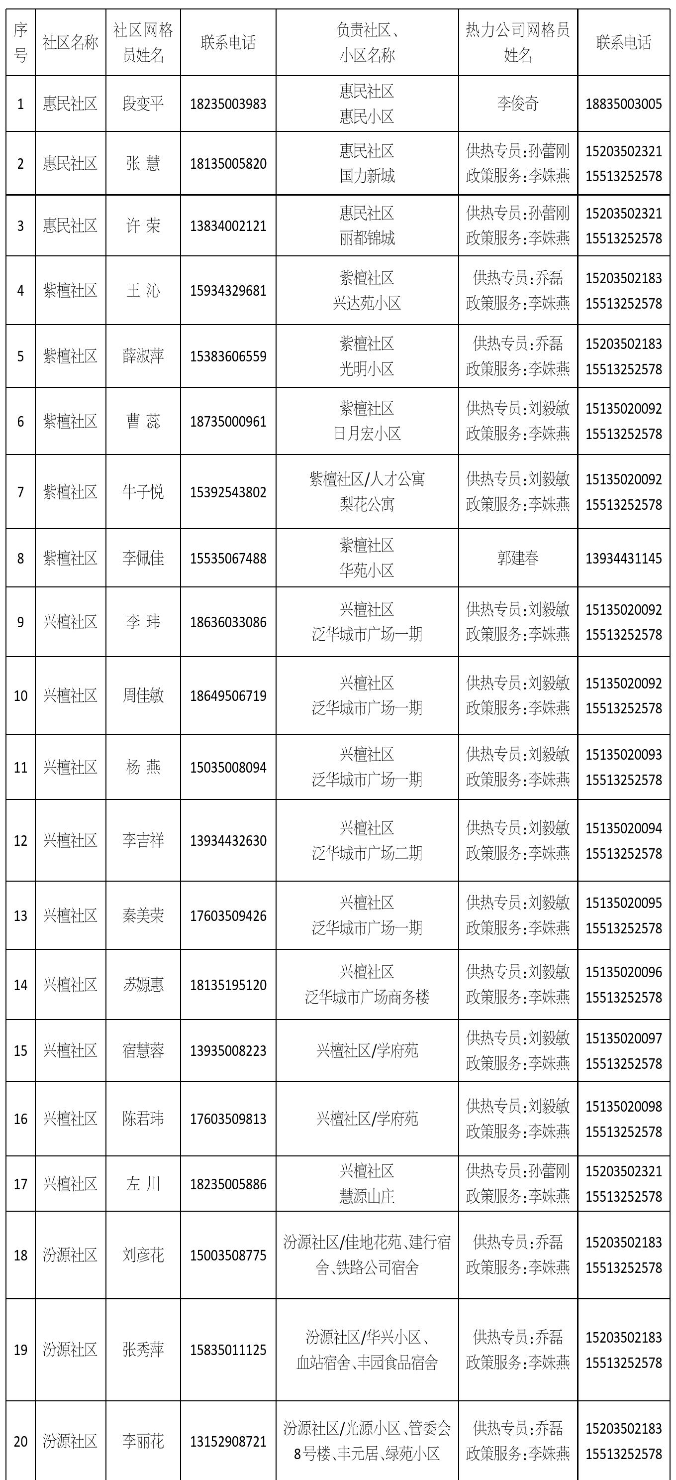 忻州城區(qū)供熱三片區(qū)網(wǎng)格員信息公示