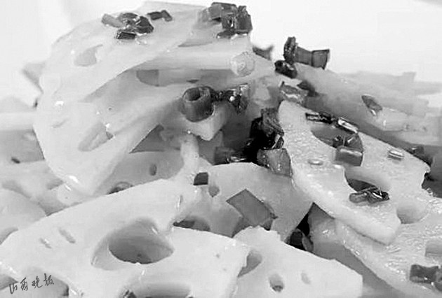 民俗流傳中,人們借助于蓮藕的特征和諧音賦予了它更多的吉祥內容。古太原地區(qū)的傳統(tǒng)筵席“八碟八碗”中,有一款坐底大菜——涼拌蓮菜(本地人叫藕根大片)。之所以如此安排,完全就是沿用了諧音吉祥的民俗習慣。“藕”與“偶”諧音,藕根大片占個“偶”,有佳偶天生的美好寓意,故而成了八大碗中必不可少的一道菜品。“蓮菜”又諧音“連財”,意思是菜上完了,還有扯不斷、沒完沒了的財運,八碗帶財一起來。寓意如此美好,自然人人都滿意。