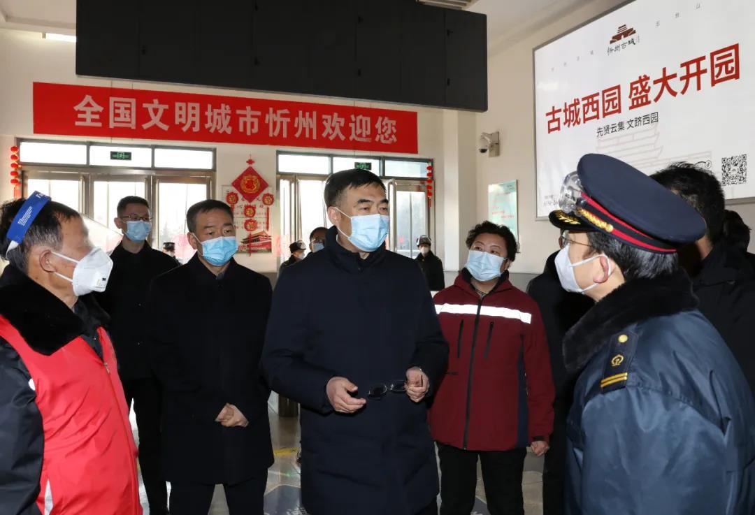 在忻州西站,李建國(guó)看望鐵路站場(chǎng)人員、衛(wèi)生防疫人員和社區(qū)志愿者,了解進(jìn)出站高鐵列車班次和人流高峰時(shí)間分布。他指出,防疫一線人員是疫情防控的“第一道防線”,要以崇高的職業(yè)使命感切實(shí)守好第一落點(diǎn)的防疫責(zé)任,不折不扣落實(shí)各項(xiàng)防控措施,嚴(yán)格排查篩查,有力、有序、有效做好站點(diǎn)疫情防控工作。要根據(jù)客流峰谷時(shí)段科學(xué)排班、合理調(diào)度、保證休息,要嚴(yán)格操作規(guī)程,做好個(gè)人防護(hù),為忻州筑牢衛(wèi)生安全屏障。