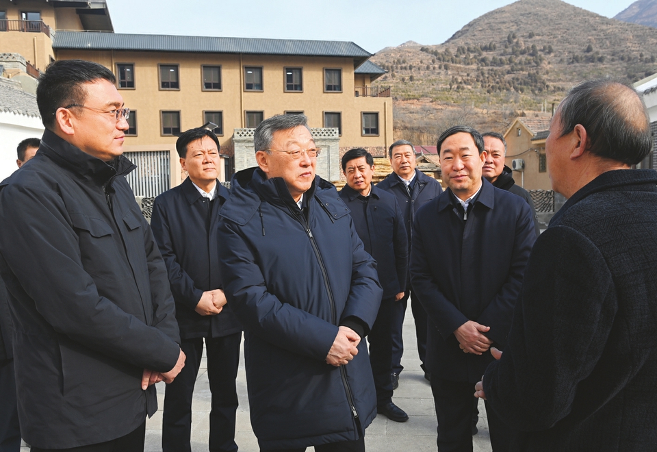 一月九日,省委書記唐登杰在左權(quán)縣澤城村調(diào)研鞏固拓展脫貧攻堅(jiān)成果同鄉(xiāng)村振興有效銜接工作情況,了解老年人日間照料中心建設(shè)運(yùn)行情況。山西日?qǐng)?bào)記者史曉波攝 山西日?qǐng)?bào)訊(記者楊文?。?月9日,省委書記唐登杰赴晉中市左權(quán)縣、榆社縣調(diào)研,深入鄉(xiāng)村振興聯(lián)系縣幫扶村指導(dǎo)工作。他強(qiáng)調(diào),要深入學(xué)習(xí)貫徹習(xí)近平總書記關(guān)于“三農(nóng)”工作的重要論述和對(duì)山西工作的重要講話重要指示精神,學(xué)習(xí)運(yùn)用“千萬(wàn)工程”經(jīng)驗(yàn),強(qiáng)化黨建引領(lǐng)作用,持續(xù)鞏固拓展脫貧攻堅(jiān)成果,不斷提升鄉(xiāng)村產(chǎn)業(yè)發(fā)展水平、鄉(xiāng)村建設(shè)水平、鄉(xiāng)村治理水平,加快建設(shè)宜居宜業(yè)和美鄉(xiāng)村,讓人民群眾生活更加殷實(shí)更加幸福。省委常委、秘書長(zhǎng)李鳳岐參加調(diào)研。 左權(quán)縣麻田鎮(zhèn)澤城村因地制宜發(fā)展核桃、寫生、水電、光伏等特色產(chǎn)業(yè),帶動(dòng)村民增收致富取得積極成效。唐登杰來到該村核桃產(chǎn)業(yè)示范基地,詳細(xì)了解品種選育、產(chǎn)品研發(fā)、生產(chǎn)加工、市場(chǎng)銷售等情況,與山西農(nóng)業(yè)大學(xué)的科技特派員深入交流,勉勵(lì)他們圍繞核桃全產(chǎn)業(yè)鏈強(qiáng)化科技攻關(guān),助力左權(quán)綿核桃發(fā)展成大產(chǎn)業(yè)。他指出,產(chǎn)業(yè)振興是鄉(xiāng)村振興的重中之重,要堅(jiān)持“特”“優(yōu)”戰(zhàn)略,做好“土特產(chǎn)”文章。該村依托山水資源打造的中國(guó)北方國(guó)際寫生基地,吸引了一大批藝術(shù)創(chuàng)作者來此采風(fēng),形成了以山水寫生、特色民宿等為支撐的產(chǎn)業(yè)生態(tài)。唐登杰與正在村落巷隅創(chuàng)作的美院師生親切交流,察看街道風(fēng)貌整治、鄉(xiāng)風(fēng)文明建設(shè)成效,強(qiáng)調(diào)要用好“千萬(wàn)工程”經(jīng)驗(yàn),遵循鄉(xiāng)村發(fā)展規(guī)律,以更高標(biāo)準(zhǔn)抓好農(nóng)村人居環(huán)境整治和美麗鄉(xiāng)村建設(shè),堅(jiān)定走好文旅產(chǎn)業(yè)助推鄉(xiāng)村振興的路子。在澤城村老年人日間照料中心,唐登杰了解伙食、健康等方面服務(wù)保障情況,祝愿老人們健康長(zhǎng)壽、生活幸福。他還來到澤城九年一貫制學(xué)校,了解在校生人數(shù)、教師配備和校園建設(shè)等情況,囑咐有關(guān)部門做好相關(guān)保障工作,讓孩子們?cè)诟玫沫h(huán)境中茁壯成長(zhǎng)。 榆社縣箕城鎮(zhèn)北馬會(huì)村通過強(qiáng)化黨建引領(lǐng)、產(chǎn)業(yè)驅(qū)動(dòng)、民生賦能,扎實(shí)推進(jìn)鄉(xiāng)村振興。唐登杰與村“兩委”干部深入交流,了解黨支部引導(dǎo)帶動(dòng)返鄉(xiāng)能人助力鄉(xiāng)村振興情況。他強(qiáng)調(diào),農(nóng)村工作千頭萬(wàn)緒,抓好基層組織建設(shè)是關(guān)鍵。要結(jié)合開展主題教育,把基層黨組織這個(gè)戰(zhàn)斗堡壘建設(shè)得更強(qiáng),把黨員先鋒模范作用發(fā)揮得更好,帶領(lǐng)老百姓繪就鄉(xiāng)村振興新圖景。 (責(zé)任編輯:蔡文斌) |