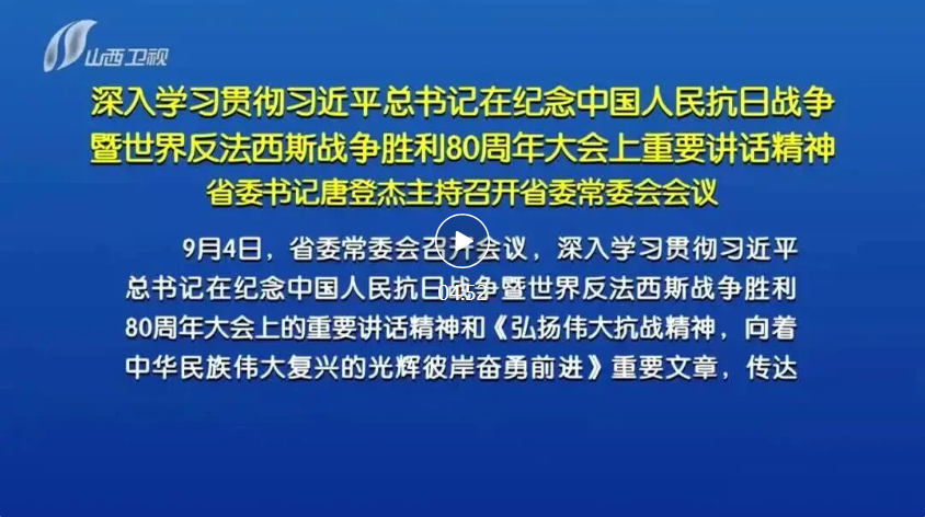 會議指出,習近平總書記在紀念中國人民抗日戰(zhàn)爭暨世界反法西斯戰(zhàn)爭勝利80周年大會上的重要講話,全面回顧了中國人民抗日戰(zhàn)爭的偉大歷程,深刻闡釋了抗戰(zhàn)勝利的重大意義,再次宣示了中國人民“銘記歷史、緬懷先烈、珍愛和平、開創(chuàng)未來”的堅定立場,具有很強的政治性、思想性、戰(zhàn)略性和指導性,必將激揚起為實現(xiàn)中華民族偉大復興、推動構建人類命運共同體而奮斗的磅礴偉力。全省上下要堅持以習近平新時代中國特色社會主義思想為指導,深入學習貫徹習近平總書記重要講話精神,深刻領悟“兩個確立”的決定性意義,堅決做到“兩個維護”,堅定不移走中國特色社會主義道路,傳承和弘揚偉大抗戰(zhàn)精神,踔厲奮發(fā)、勇毅前行,努力在推動資源型經濟轉型發(fā)展上邁出新步伐,奮力譜寫三晉大地推進中國式現(xiàn)代化新篇章。要充分發(fā)揮我省紅色文化資源豐富的優(yōu)勢,做好抗戰(zhàn)史研究闡釋工作,更加注重用黨的優(yōu)良革命傳統(tǒng)和作風教育人,教育引導全省廣大黨員干部群眾堅定歷史自信、增強歷史主動,賡續(xù)紅色血脈、激發(fā)愛國熱情,把偉大抗戰(zhàn)精神一代代傳下去。要進一步增強牢記囑托、感恩奮進、頑強拼搏、真抓實干的斗志,堅定扛牢國家資源型經濟轉型綜改試驗區(qū)建設、深化能源革命、打造內陸地區(qū)對外開放新高地、促進中部地區(qū)加快崛起、推動黃河流域生態(tài)保護和高質量發(fā)展等重大使命任務,扎實推動高質量發(fā)展,不斷深化全方位轉型,統(tǒng)籌好發(fā)展和安全,努力完成全年經濟社會發(fā)展目標任務,確?!笆奈濉表樌展?、“十五五”良好開局。要堅持黨的全面領導,堅定扛牢管黨治黨政治責任,不斷提高各級黨組織的政治領導力、思想引領力、群眾組織力、社會號召力,以永遠在路上的堅韌和執(zhí)著推進全面從嚴治黨,有力引領保障全省高質量發(fā)展和現(xiàn)代化建設。