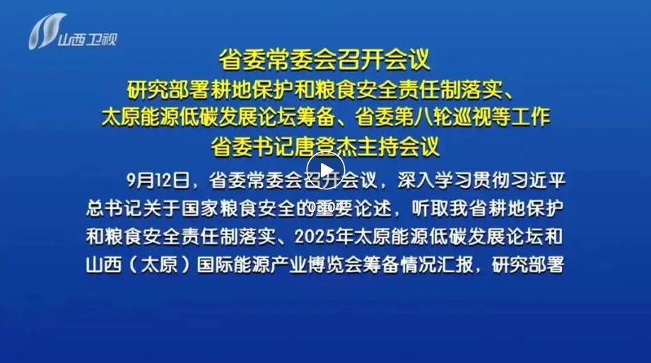 9月12日,省委常委會(huì)召開(kāi)會(huì)議,深入學(xué)習(xí)貫徹習(xí)近平總書(shū)記關(guān)于國(guó)家糧食安全的重要論述,聽(tīng)取我省耕地保護(hù)和糧食安全責(zé)任制落實(shí)、2025年太原能源低碳發(fā)展論壇和山西(太原)國(guó)際能源產(chǎn)業(yè)博覽會(huì)籌備情況匯報(bào),研究部署十二屆省委第八輪巡視工作。省委書(shū)記唐登杰主持會(huì)議。