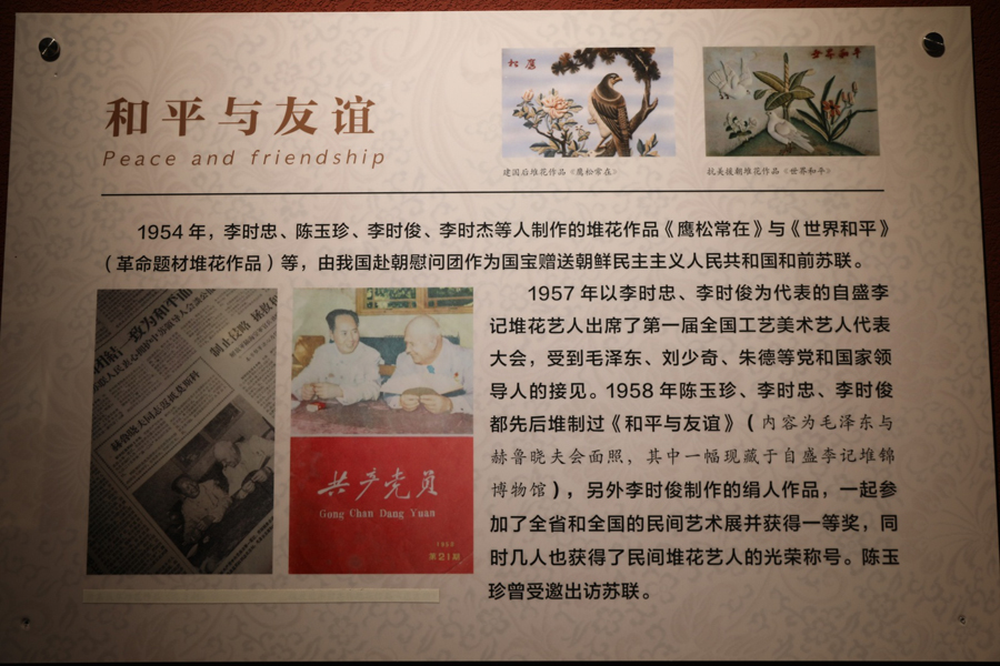 然而,歷史的波瀾并未停止。中華人民共和國(guó)成立后,堆花藝術(shù)經(jīng)歷了從繁榮到衰落,再到復(fù)興的曲折歷程。在黨和政府的關(guān)懷下,老一輩堆花藝人積極響應(yīng)號(hào)召,成立堆花小組,將堆花藝術(shù)服務(wù)于國(guó)家建設(shè)和人民生活。抗美援朝期間,堆花作品作為國(guó)寶贈(zèng)予朝鮮,見證了中朝兩國(guó)人民的深厚友誼。