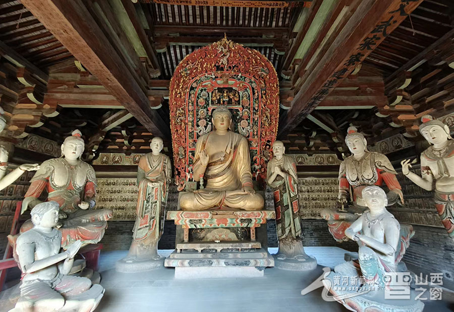 鎮(zhèn)國寺。錢龍 攝 鎮(zhèn)國寺和雙林寺都是平遙縣內(nèi)世界文化遺產(chǎn)的重要組成部分。鎮(zhèn)國寺位于平遙縣東北的郝洞村,初名“京城寺”,明嘉靖時改稱“鎮(zhèn)國寺”,現(xiàn)存寺院共有兩進(jìn)院落,坐北朝南,從前至后沿中軸線建有天王殿樓等主要建筑。其中,位于寺院中部的萬佛殿建于北漢年間,是中國現(xiàn)存最古老的木結(jié)構(gòu)建筑之一,被稱為“千年瑰寶”,是中國佛教寺院中現(xiàn)存的三處五代建筑之一,其中的彩塑,更是全國寺廟殿宇中保存至今的唯一五代作品。
