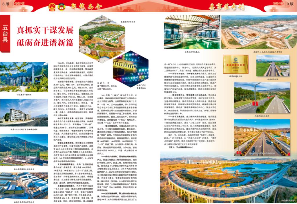 2024年,五臺縣委、縣政府堅持以習(xí)近平新時代中國特色社會主義思想為指導(dǎo),認(rèn)真貫徹落實(shí)中央、省、市各項決策部署,聚焦高質(zhì)量發(fā)展首要任務(wù),加快推動強(qiáng)縣富民,經(jīng)濟(jì)運(yùn)行穩(wěn)中向好,社會發(fā)展和諧穩(wěn)定,中國式現(xiàn)代化五臺實(shí)踐邁出堅實(shí)步伐。