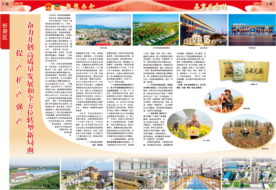 一年來,忻府區(qū)堅持統(tǒng)籌兼顧、承壓奮進,全區(qū)經(jīng)濟運行平穩(wěn)有序,GDP、固投、社零三項經(jīng)濟指標絕對值繼續(xù)領(lǐng)跑全市。堅持因地制宜、深化轉(zhuǎn)型,新質(zhì)生產(chǎn)力加快發(fā)展,全力以赴做好24個省市重點工程服務(wù)保障工作,全年完成投資123.15%,“專精特新”企業(yè)達到18戶,年度任務(wù)完成率100%,溫泉康養(yǎng)和資源再生利用兩個市級專業(yè)鎮(zhèn)全年完成營收14.68億元,忻州古城入選“全省非遺與旅游深度融合典型案例”,頓村、奇村省級旅游度假區(qū)評審成績名列全省前茅。堅持創(chuàng)新引領(lǐng)、重點帶動,改革步伐穩(wěn)健有力,國企改革深化拓展,區(qū)糧油加工廠等公司實現(xiàn)國有資產(chǎn)保值增值,醫(yī)療改革成效顯著,鄉(xiāng)村兩級醫(yī)療衛(wèi)生機構(gòu)標準化建設(shè)達標率超過95%,教育改革扎實推進,一職中成為省高水平中等職業(yè)學(xué)校建設(shè)單位,整體教育教學(xué)質(zhì)量穩(wěn)居全市第一方陣。堅持穩(wěn)糧保供、提質(zhì)增效,鄉(xiāng)村全面振興扎實推進,全區(qū)糧食作物播種面積完成2024年指標任務(wù)的105%,鹽堿地綜合利用項目全面開工,5個精品示范村、22個提檔升級村取得階段性成效,榮獲全省學(xué)習(xí)運用“千萬工程”經(jīng)驗成效明顯先進市縣。堅持生態(tài)保護、綠色發(fā)展,厚植生態(tài)底色,全年大氣優(yōu)良天數(shù)281天,全年重污染天氣同比減少,定襄橋國考斷面水質(zhì)達地表水Ⅲ級優(yōu)良水質(zhì),中央、省級2.8萬畝造林任務(wù)全部完成,南云中河EOD項目入選國家示范支持項目。堅持以人民為中心、積極回應(yīng)群眾期盼,人民群眾獲得感幸福感安全感持續(xù)增強,老舊小區(qū)改造完工率達91%,“煤改電”鞏固提升改造成效顯著。