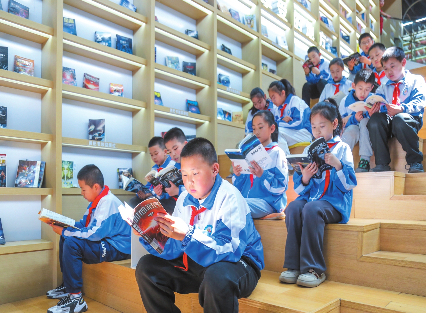 4月17日,忻州市七一路小學師生走進市圖書館,舉行以“培育讀書風尚·建設文化強國”為主題的社會實踐活動。張存良攝