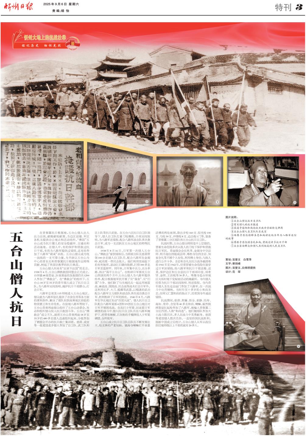 在晉察冀抗日根據(jù)地,五臺山僧人出人出力出錢,獻(xiàn)糧獻(xiàn)槍獻(xiàn)策,為邊區(qū)創(chuàng)建、軍區(qū)各機(jī)關(guān)提供辦公地點和活動場所,“佛國”五臺山成為抗日健兒的安全隱蔽所、交通站和活動基地。在僧人中,有的保護(hù)和營救過抗日干部,有的為八路軍提供過情報,還有的參加了八路軍“破戒”殺敵。五臺山僧眾成為統(tǒng)一戰(zhàn)線的一支可靠力量,為開辟以五臺山為中心的晉東北和晉察冀抗日根據(jù)地作出特殊貢獻(xiàn),樹起了我國宗教界的抗日典范。