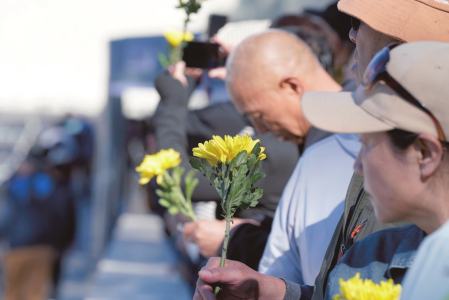 圖①:9月18日,在沈陽“九·一八”歷史博物館殘歷碑廣場拍攝的“勿忘九一八”撞鐘鳴警儀式現(xiàn)場。